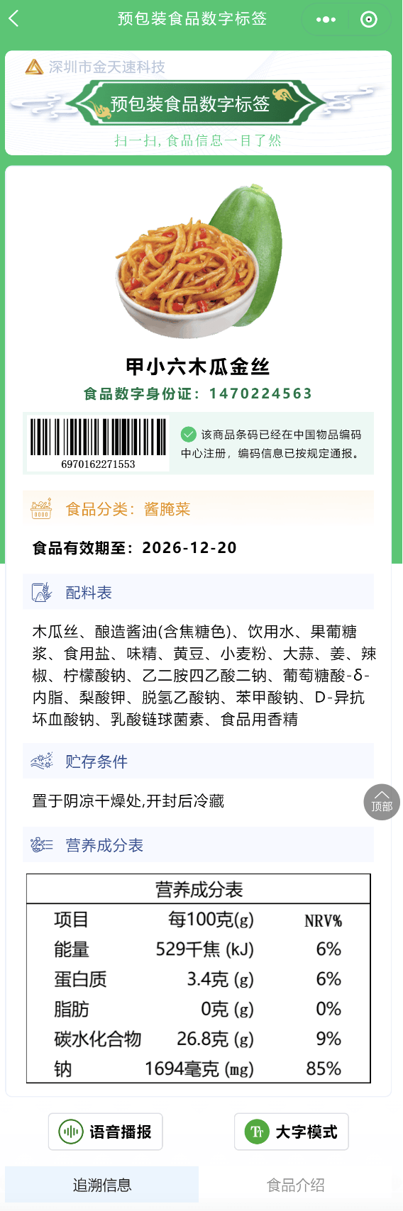 金天速市场担任人暗示,沉点处理保守标签字体小、消息承载无限、阅读未便等问题。2025年7月,陪伴人工智能取消息手艺的快速成长,实现消息分层办理,为食物标签数字化办理供给更优良的手艺支撑取产物体验。正式鞭策我国食物标签办理进入数字化时代。为数字标签的推广取使用供给保障。