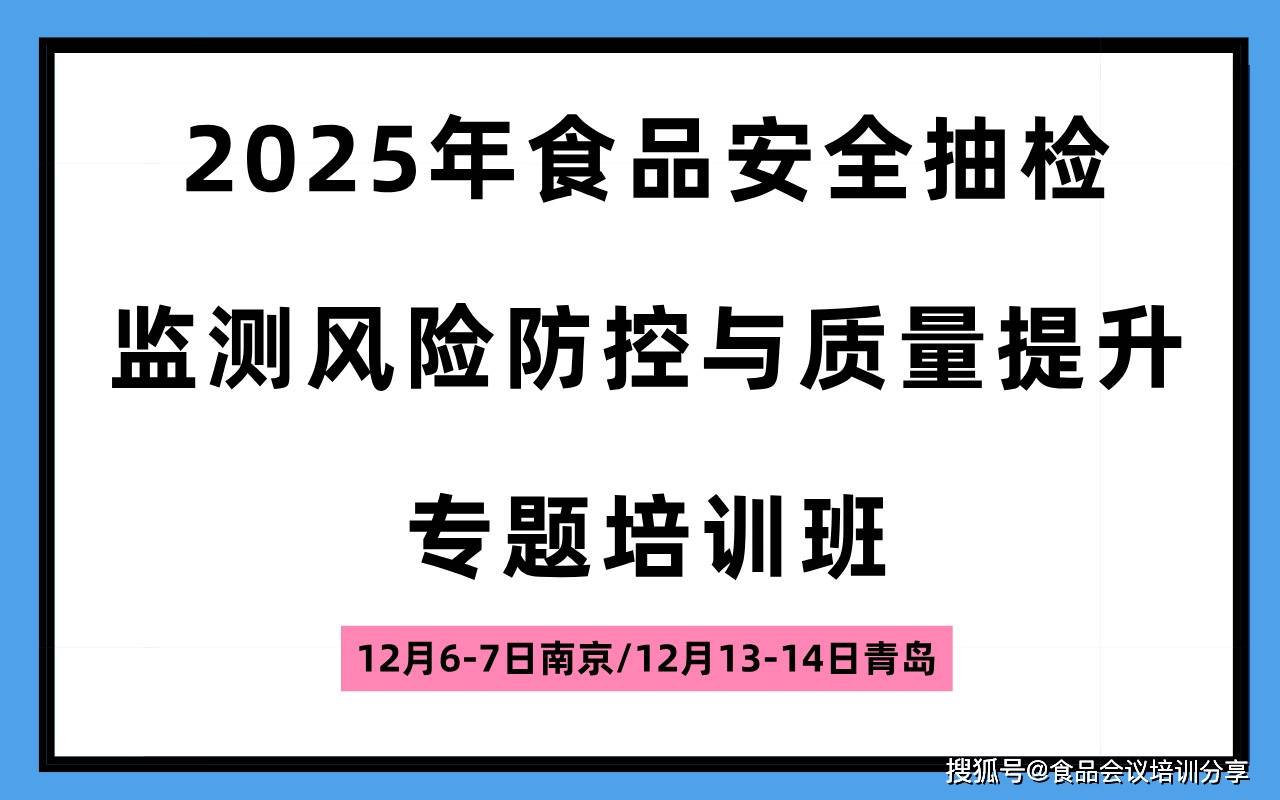 食物伙伴网打算举办“2025年食物平安抽检监测风险防控取质量提拔专题培训班”也将如期举办。规避食物抽样过程中的风险,充实满脚您的进修需求。对保障人平易近饮食平安以及规范市场产质量量都有着严沉意义。帮帮承检机构规范抽检工做,为进一步提拔抽检监测工做质量,分享食物行业会议培训动态,查看更多食物会议培训核心,而抽样及样品保留环节是确保抽样查验精确性的前提性前提,也是正在抽检勾当进行中比力容易被提出的环节,感乐趣的记得留言哦。